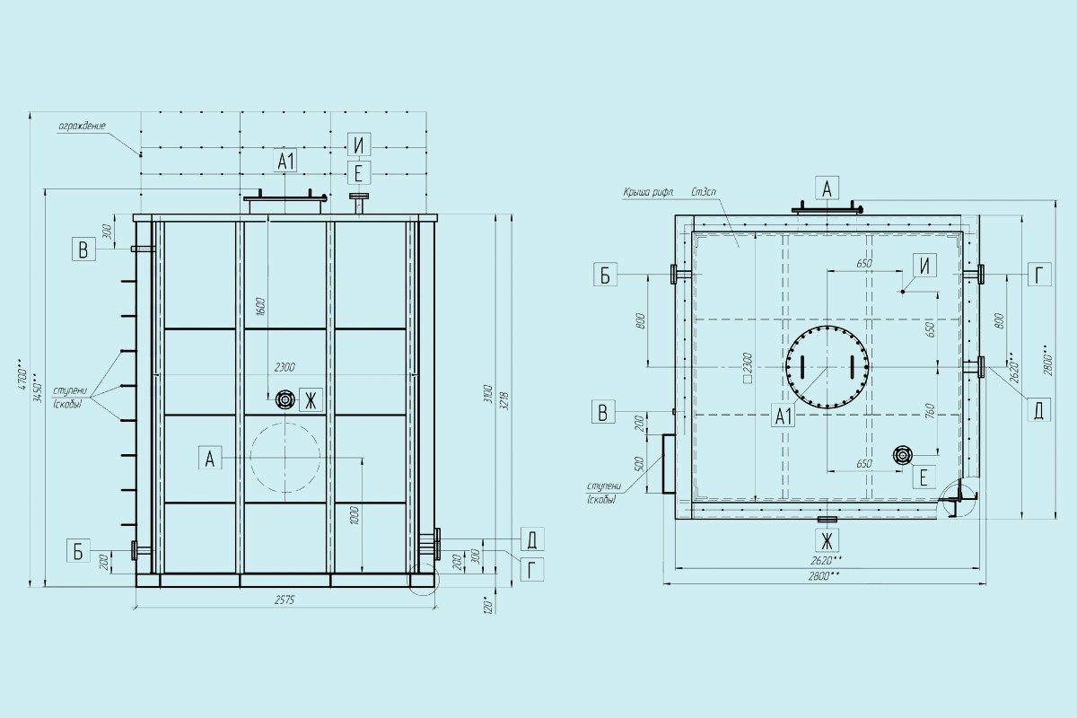 Прямоугольные резервуары предназначены для хранения различных жидкостей. Изготавливают их из сталей следующих марок:
